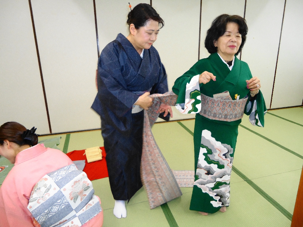 (着物塾)というとお分かりにならないかも知れませんがただ、着物を着るだけの着付け教室ではなく着物の事(型式、種類、コーディネイト等)を知り、その知識を着付けに活かす総合的な教室です。着物によって抜き・襟幅・帯の位置等が違います、そのようなことも着物のT・P・Oとして着付けに反映されなくてはなりません。着物を日本の伝統的な文化として基本を正しく覚えて欲しい、そのような願いであえて(着物塾)としました。そして、それぞれに素敵になってほしい、それが私どもの(着物塾)です。ご自分の着物、おばあさまの着物、お母様や知人の着物、どのような着物でもあなたに似合うようにコーディネイトしましょう。